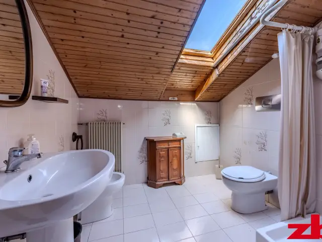La proprietà si sviluppa su tre piani e gode di un grande giardino privato, perfetto per momenti di relax all’aperto.