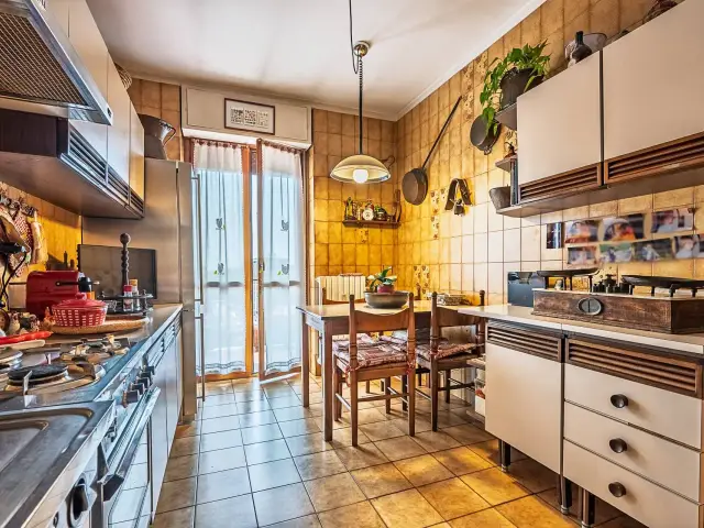 A Beinasco, in Via San Giacomo, all'interno di un complesso residenziale immerso nel verde, luminoso e panoramico appartamento al settimo ed ultimo piano con ascensore. L'unità immobiliare è composta da un ingresso su soggiorno, cucina abitabile, due camere e due bagni. Parquet nelle camere da letto, aria condizionata e un ampio balcone angolare. Riscaldamento centralizzato con termo valvole. Completano la proprietà una soffitta e una cantina. Possibilità di acquistare box auto singolo ad euro 25.000