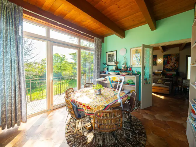 Accogliente e spazioso soggiorno, molto luminoso, con accesso a un terrazzo panoramico;