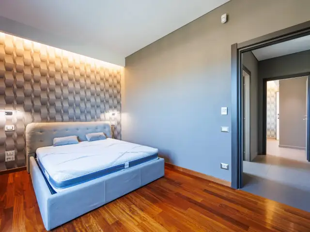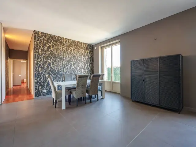 L'unità si apre con un elegante ingresso e si sviluppa con un ampio soggiorno doppio, una cucina abitabile completamente attrezzata, quattro camere da letto e tre bagni, distribuiti con armonia e funzionalità.
