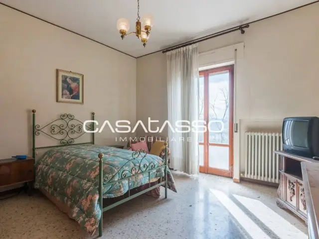 L'appartamento è composto da un ingresso, una salone con camino, un cucinotto, un tinello, uno studio, due camere da letto, un bagno e un balcone con vista panoramica. Termoautonomo