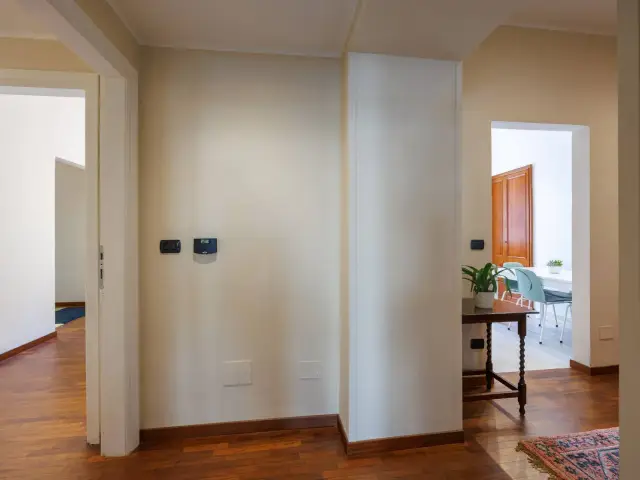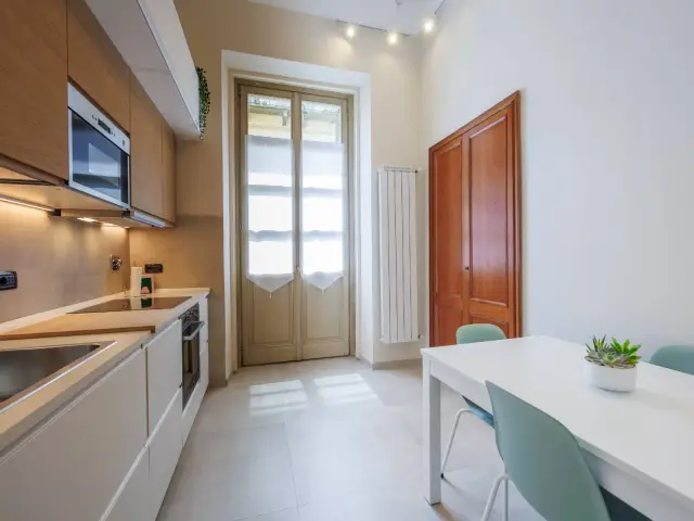 In stabile d'epoca restaurato recentemente, tra Piazza Solferino e Piazza Castello, luminoso appartamento completamente ristrutturato e arredato a nuovo al primo piano con affaccio su Via Bertola.