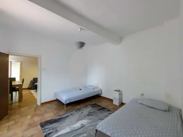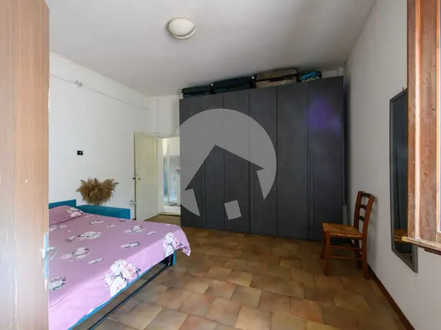 La superficie di 96 mq è suddivisa tra i due piani: un vano utilizzabile come studio, taverna o ufficio è al piano terra; di sopra troviamo il soggiorno, una cucina semi abitabile, due spaziose camere da letto e un bagno completo: sempre al primo piano abbiamo un ampio vano attualmente di servizio ma suscettibile di una migliore utilizzazione.