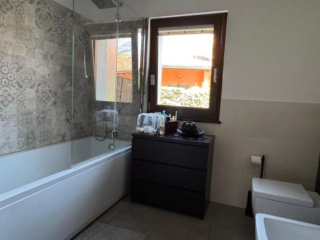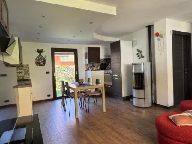 Nella zona pianeggiante del comune di Charvensod, in fabbricato a schiera, propongo soluzione centrale disposta su tre livelli e libera su fronte sud e nord. La proprietà è composta al piano terra da ingresso su soggiorno living con zona pranzo e cucina e accessi ad area verde esterna sia a sud che a nord, un ampio bagno, al piano primo due camere, al piano interrato una dispensa, un grande deposito/palestra, bagno/lavanderia ed un box doppio. Esternamente oltre alle due aree verdi due posti auto, l'immobile ha sostenuto i lavori del superbonus 110 garantendo un risparmio energetico alto. All'interno ottime rifiniture, materiali di qualità e compresa di quasi tutto l'arredo.