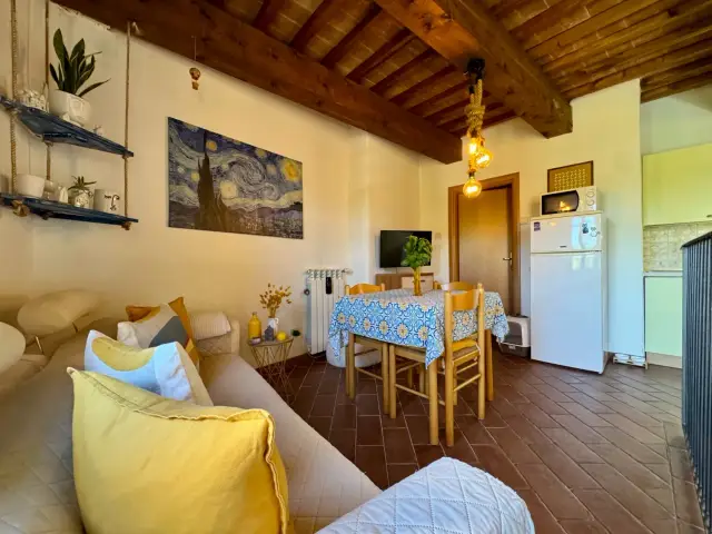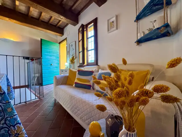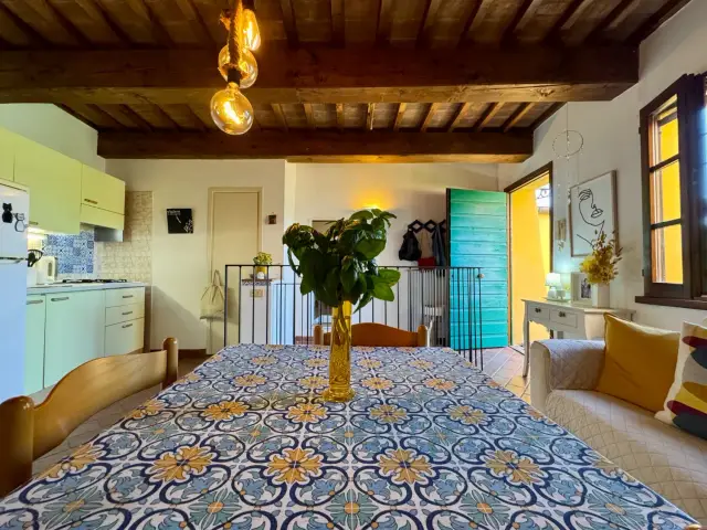 Al piano terra troviamo una zona giorno luminosa e accogliente, composta da soggiorno con zona pranzo e cucina a vista, oltre ad un bagno con doccia e angolo lavanderia. Gli ambienti sono ben distribuiti, ideali per vivere o da mettere subito a reddito.