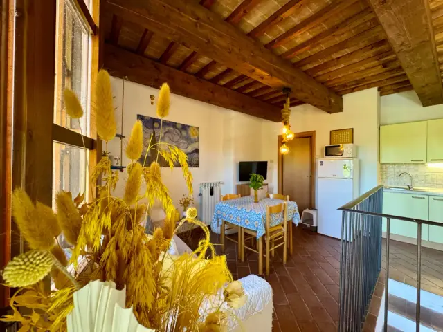 L’immobile, con ingresso indipendente, si sviluppa tra piano terra e piano seminterrato ed è caratterizzato da dettagli architettonici tipici della tradizione toscana, come i soffitti con travi a vista e il pavimento in cotto, sapientemente valorizzati in un restyling curato e moderno.