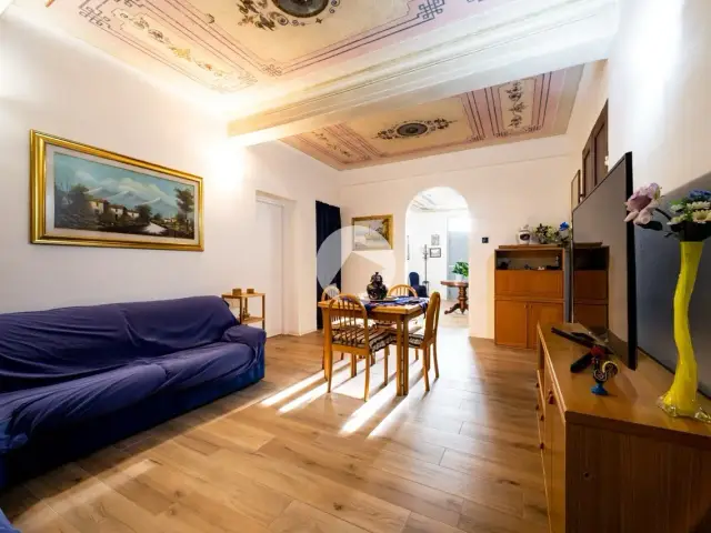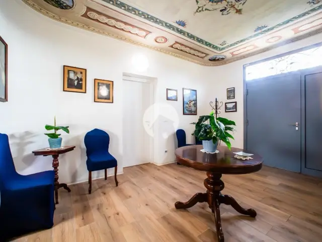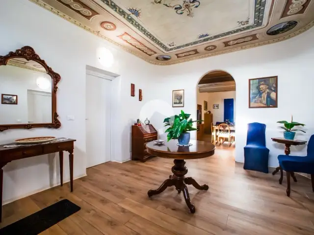 L'immobile, di ampie dimensioni, è composto da un ingresso su ampio soggiorno con meravigliosi affreschi, un salone con accesso al giardino sul retro dell'immobile, una cucina abitabile di oltre 18 mq, il disimpegno con armadiatura, il bagno principale.