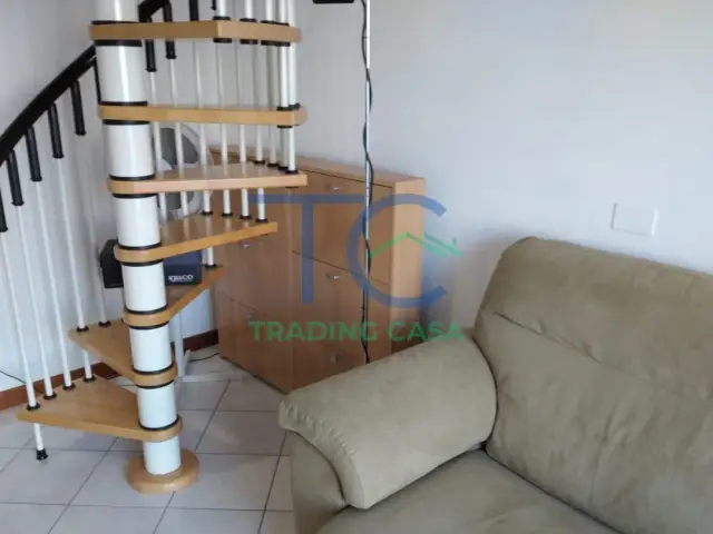 L’ingresso si apre su un soggiorno accogliente con angolo cottura, dove trovi anche un bagno finestrato con box doccia e un piccolo balcone ideale per uno sfogo all’aperto. Una scala a chiocciola conduce al piano superiore, oggi accatastato come sottotetto, dove si trova la camera da letto, intima e ben organizzata.