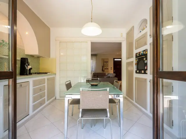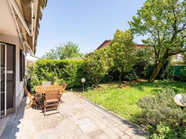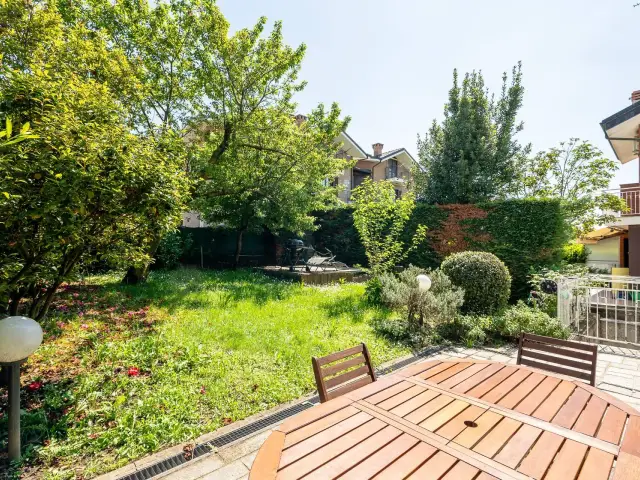 Posta in un bel complesso immobiliare residenziale costruito negli anni 90 la villa si sviluppa su due livelli oltre al piano interrato e mansardato e gode di una superficie complessiva di mq 190 quadrati circa oltre all'autorimessa di mq 30 e al giardino ad uso esclusivo di circa mq 250.