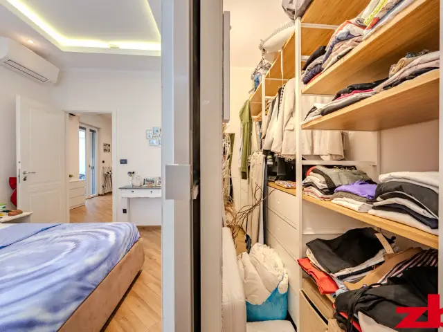 L'appartamento si presenta così composto: ingresso in zona giorno con accesso diretto al terrazzo e adiacente ad una spaziosa zona living con cucina a vista, camera matrimoniale con cabina armadi, camera singola, doppi servizi e ripostiglio.