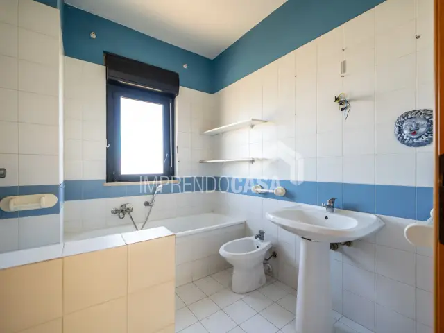 L’immobile è così distribuito: ingresso su salone, cucina, una comoda veranda, tre camere da letto, bagno con doccia e bagno con vasca.