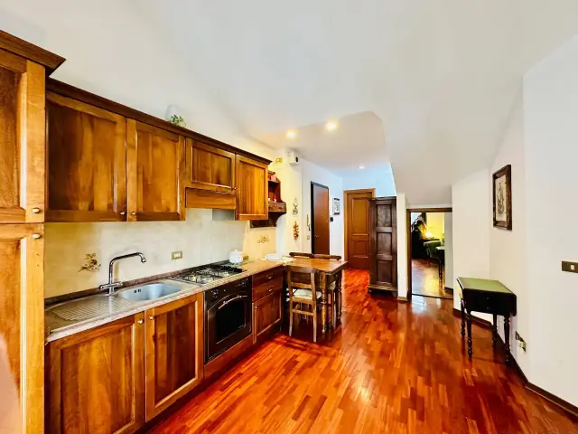 Lo stato di conservazione dell'appartamento è ottimo, con pavimentazione in palchetto in tutte le camere, infissi e finestre in legno dotate doppi vetri e porta blindata.