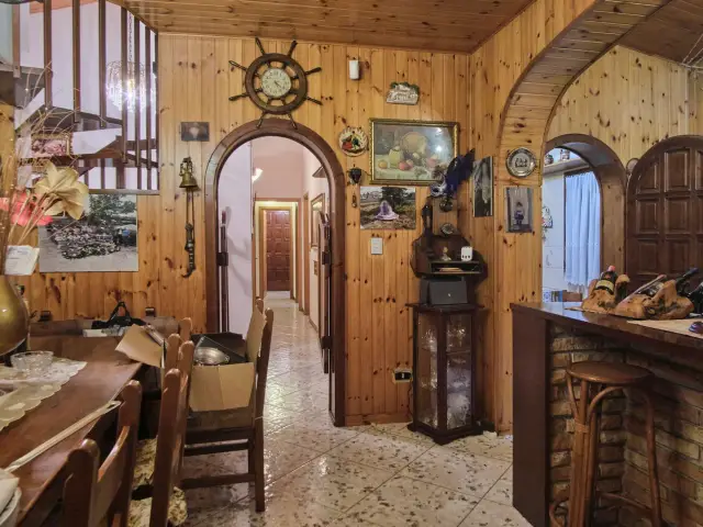 L'abitazione, sviluppata su più livelli, si distingue per l'ampiezza e la luminosità degli ambienti. Al piano terra, un accogliente ingresso introduce a un elegante soggiorno che dialoga armoniosamente con la zona pranzo e la cucina adiacente, pensata per momenti di convivialità e vita quotidiana. Sempre al piano, tre camere da letto di generose dimensioni assicurano comfort e privacy, mentre due bagni ben distribuiti e due stanze aggiuntive, oggi adibite a ripostiglio, completano la funzionalità degli spazi.