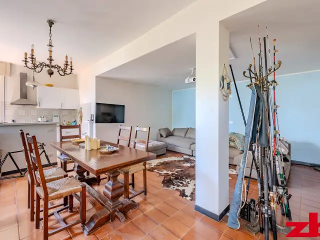 La proprietà è termoautonoma e dispone di doppio ingresso: uno carrabile dal giardino (dove è presente un box auto di circa 20 mq) e un altro pedonale indipendente.