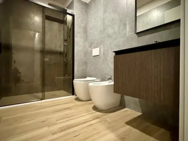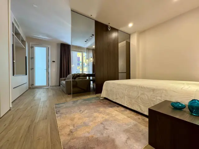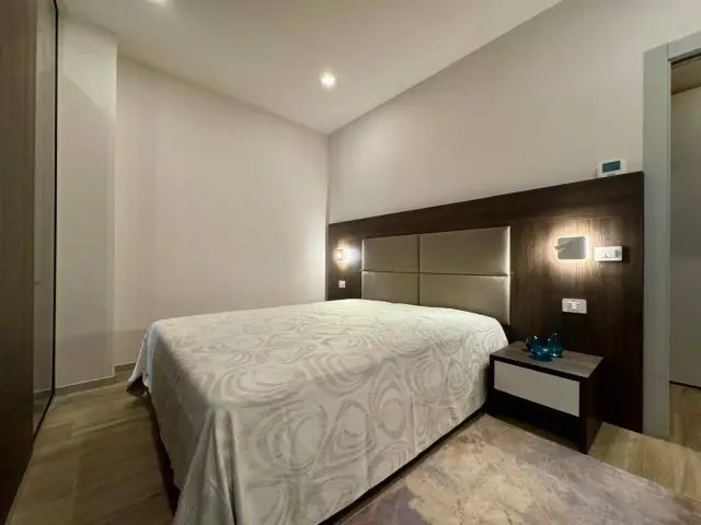L'immobile, rifinito con materiali di ultima generazione, è così composto: soggiorno con angolo cottura completamente arredato (inclusa cucina, tavolo con sedie, divano e mobile TV), una parete in vetro divide la zona giorno dalla zona notte con camera matrimoniale arredata e ampio bagno con doccia 120x80, già dotata di box doccia.