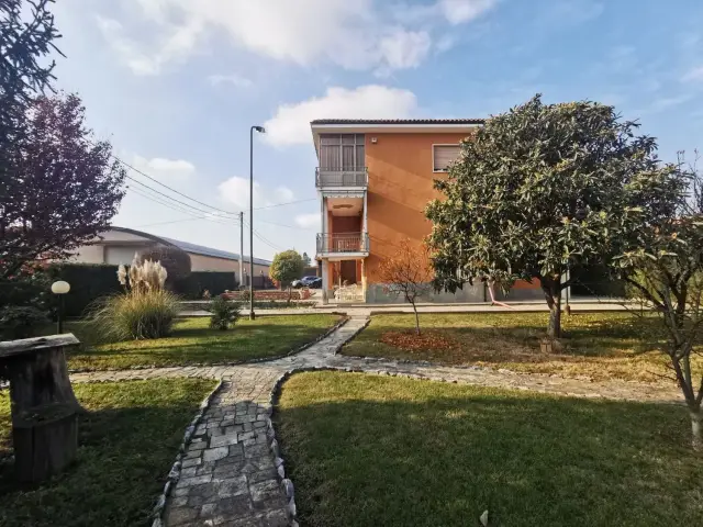 Salmour, nella zona centrale della città, splendida villa bifamiliare libera su quattro lati con ampio giardino privato disposta su tre livelli. L'immobile munito di riscaldamento autonomo e infissi in legno doppio vetro vanta due abitazioni distinte, dove al piano primo si sviluppa il primo appartamento composto da ingresso su ampio soggiorno, cucina, tre camere ed un bagno. Attraverso il vano scala comune si accede al piano superiore e risulta internamente così composto: Ingresso su ampio soggiorno, cucina con terrazzo annesso, tre camere e due bagni. Completano la proprietà, il locale mansardato, la tavernetta, i locali sgombero, e le ampie autorimesse.