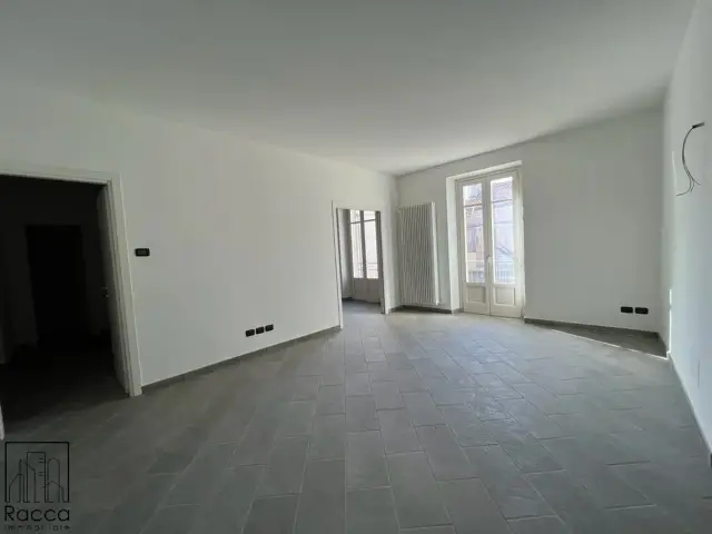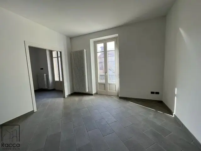 Fossano, nel prestigioso centro storico della città e più precisamente in via Roma, ampio quadrilocale sito al piano secondo di stabile signorile. L'immobile vanta una recente ristrutturazione con ottime rifiniture di pregio e risulta munito di riscaldamento autonomo e infissi in PVC doppio vetro. L'appartamento è suddiviso al suo interno così come segue: Ingresso su ampio e luminoso soggiorno, cucina abitabile, disimpegno, due camere, due bagni e balcone. Completa la proprietà la cantina al piano interrato.