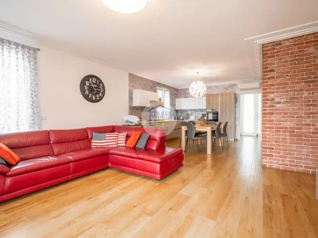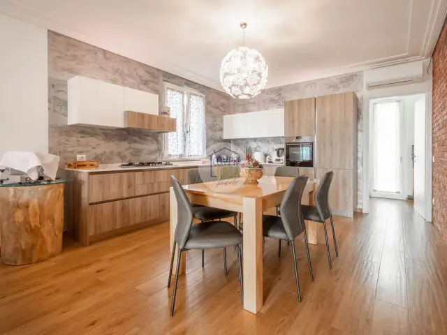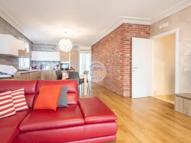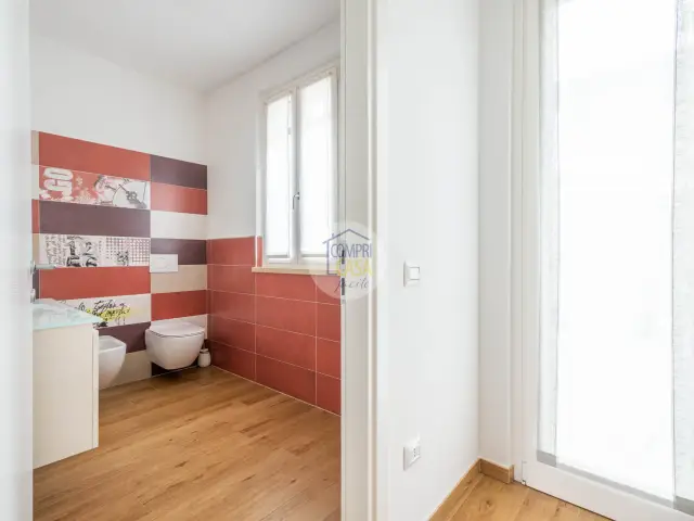 Al piano terra si apre una luminosissima zona giorno con cucina a vista e bagno di servizio, curata nei dettagli e caratterizzata da ambienti accoglienti e ben distribuiti.
