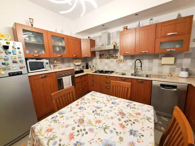 L'appartamento si dispone su tripla esposizione ed è dotato di porta blindata, antifurto, infissi in legno con tapparelle elettriche e zanzariere.
