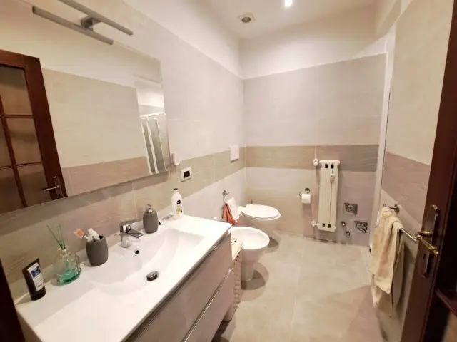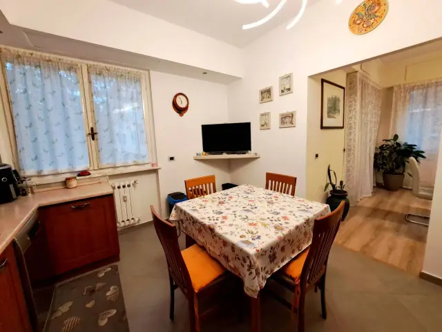 Al Villaggio delle Rose in Via Servais in un contesto tranquillo nel verde escusivo in città, proponiamo in piccola palazzina un appartamento recentemente ristrutturato al piano primo con ascensore, composto da ingresso su salone doppio, ampia cucina abitabile, 2 camere da letto, doppi servizi con box doccia e vasca idromassaggio, ripostiglio, 3 balconi e cantina.