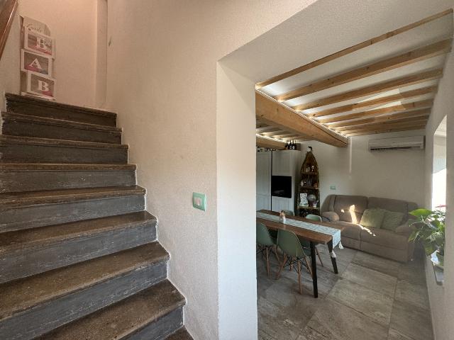 Questa abitazione rappresenta un connubio ideale tra tradizione e innovazione: il fascino delle travi a vista si sposa con la praticità degli impianti di ultima generazione, offrendo un ambiente pronto da abitare e privo di interventi.