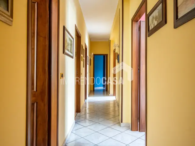 - Piano Primo (mq 130): ingresso, salone doppio, 2 camere, cameretta, cucina abitabile, servizio con bagno e doccia, 2 balconi di cui uno verandato (interno).
