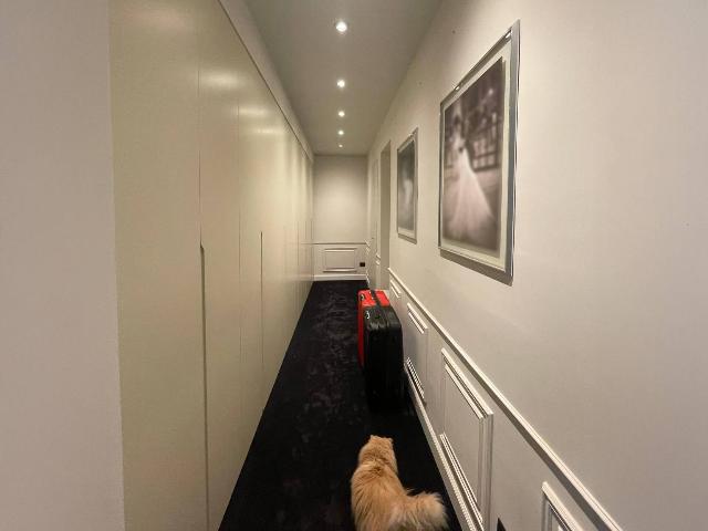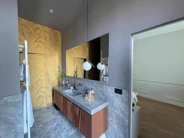 Internamente risulta così composto: ampio ingresso, salone triplo con cucina a vista, arredata ed equipaggiata, zona pranzo e zona divani tv, tre camere da letto di cui una con cabina armadi e bagno in suite con affaccio su interno cortile, e altresì presente un ulteriore ambiente adibito a studio.