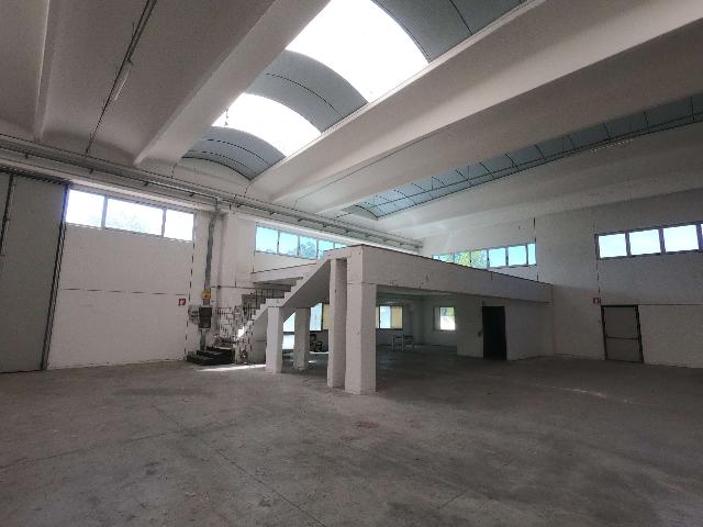 rif.046LE - In zona industriale di San Costanzo (Pesaro), vendiamo capannone realizzato su un lotto di forma pressoché quadrata, distinto da due unità immobiliari indipendenti, ciascuna composta da una zona adibita a laboratorio, rispettivamente di circa 1650 e 480 mq e da una zona uffici soppalcata di 108 mq per livello.