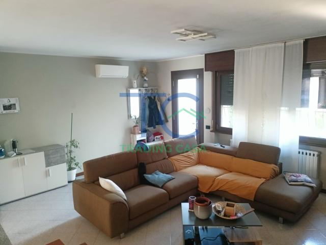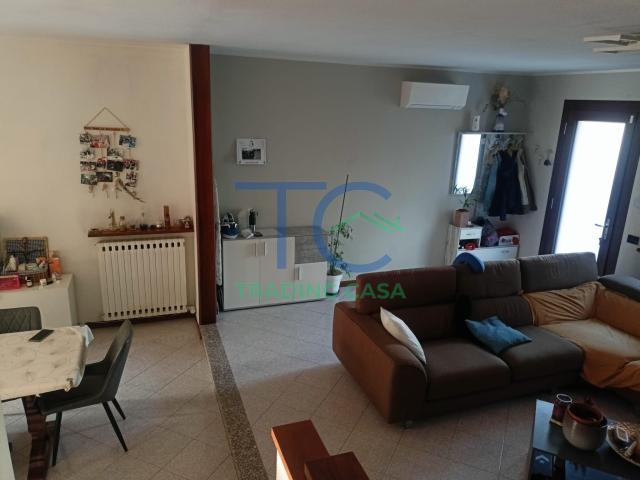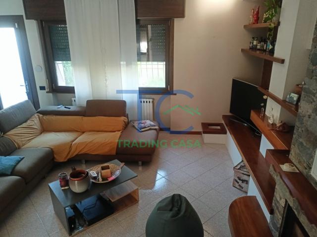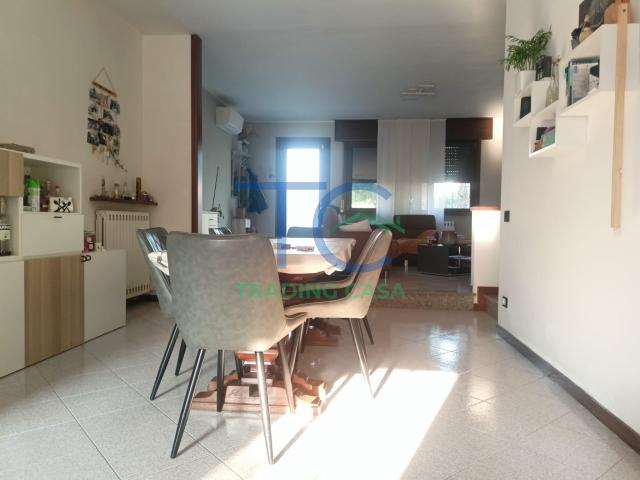 Al piano terra ti accoglie un salone doppio luminoso, una cucina abitabile moderna, un bagno elegante e l’accesso diretto all’autorimessa. All’esterno, due giardini — uno pavimentato, perfetto per cene e serate all’aperto — che ti regalano privacy e libertà.