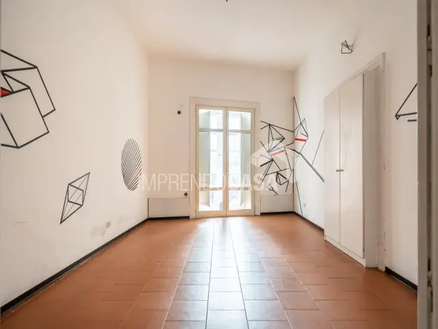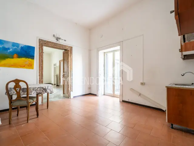 Con una ristrutturazione si può realizzare un appartamento composto da: Ingresso, ampio salone con balcone su via Maqueda, soggiorno/cucina, 2 stanze giorno, 3 camere da letto (di cui una con cabina armadio), 4 servizi, 3 balconi (2 su via Maqueda e 1 su piazzetta Caldomai).