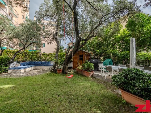 Nella tranquilla e residenziale via Carrea, a due passi dall'ospedale Villa Scassi e da via Cantore, proponiamo in vendita rifinitissimo appartamento di 119 metri quadrati. L' immobile, posto al quarto piano con ascensore in un palazzo dotato di portineria, è composto da un ingresso con armadiatura su misura, l' angolo cottura si affaccia sul soggiorno creando un bell' ambiente open space. La zona notte comprende due ampie camere matrimoniali, di cui una con ampio bagno privato finestrato. A completare la proprietà un secondo bagno, anch’esso completo e finestrato. Dalla balconata si accede al grande giardino pensile di 190 mq perfettamente attrezzato con forno a legna, dotato di impianto di irrigazione e impianto anti insetti/zanzare. Appartamento oggetto di totale ristrutturazione: parquet, infissi nuovi, aria condizionata, porta blindata.