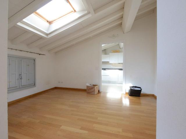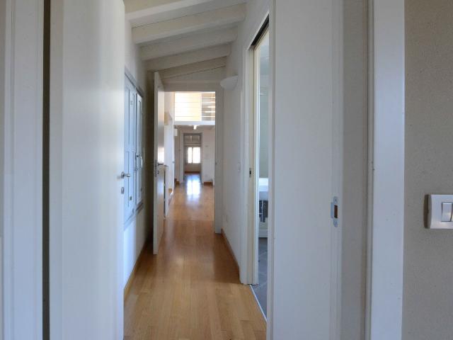 Appartamento signorile con travi a vista al quarto ed ultimo piano con ascensore, parzialmente arredato, così composto: ingresso con soggiorno e sala open space con tavolo e sedie, cucina abitabile arredata, 2 camere matrimoniali, 2 bagni, lavanderia, soppalco in sala con piccolo studio.