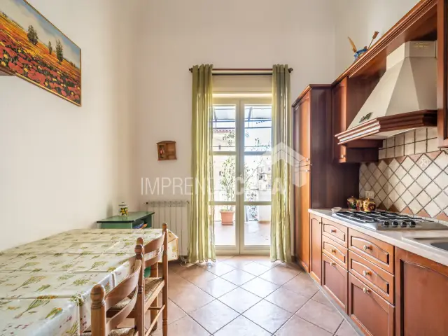 L’appartamento è in buono stato, arredato come in foto, ed è dotato di impianto di riscaldamento autonomo, climatizzatori, pavimentazione in ceramica, porte interne in legno laccate bianche, infissi in alluminio e vetrocamera, tetti a volta con cornici in gesso, porta d’ingresso blindata con cilindro europeo.