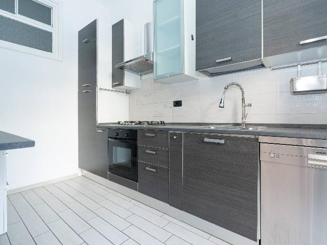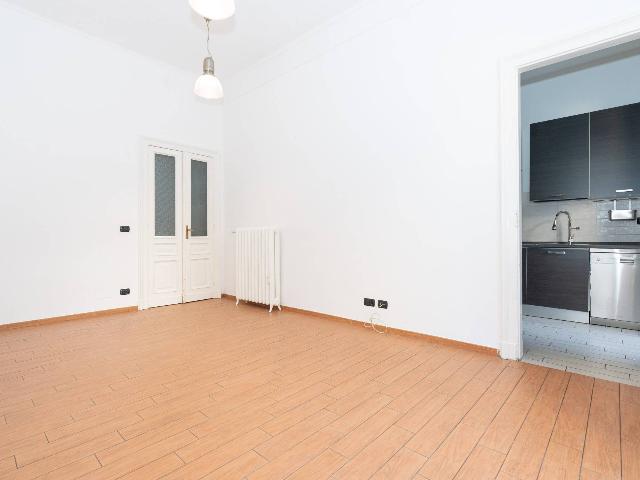 L'appartamento, inondato di luce naturale grazie alla doppia esposizione è composto da: ampio ingresso, soggiorno, cucina, due camere, due servizi, terrazzino lato cortile e balcone.