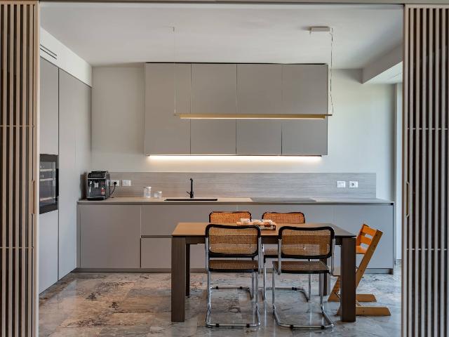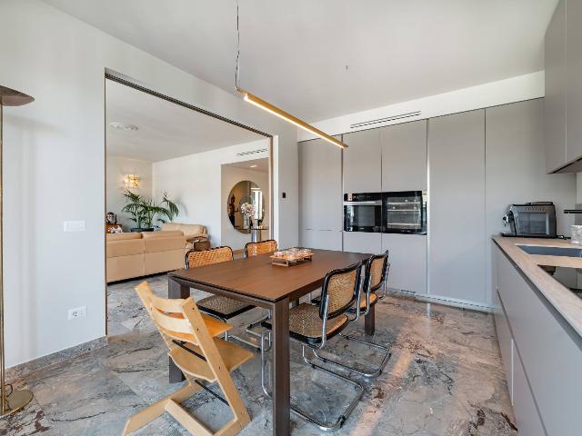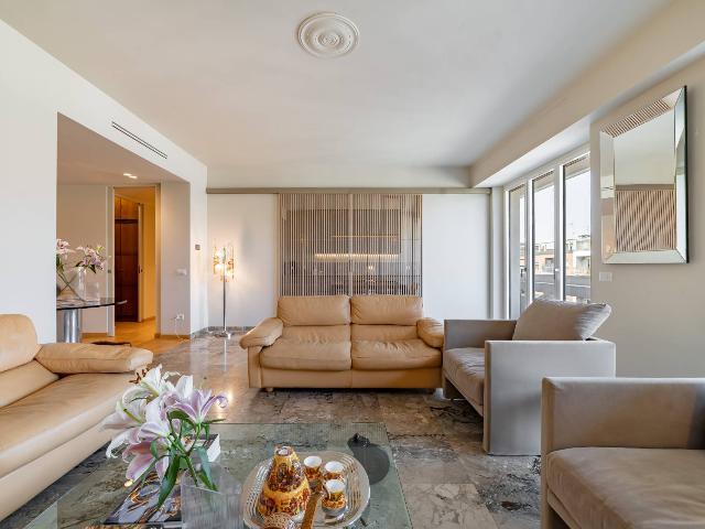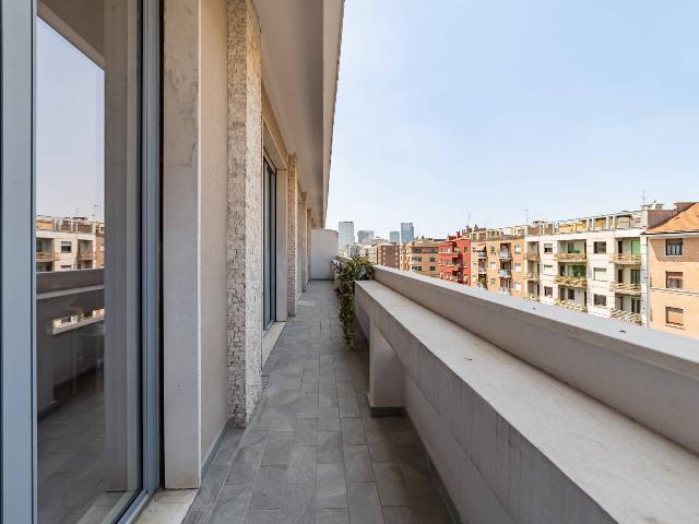 L'immobile proposto è all'ottavo e ultimo piano, internamente l'appartamento, ispirato all'estetica di Frank Lloyd Wright, è sviluppato su un unico piano e presenta una disposizione degli spazi ottimale. Progettato da un'interior designer, è caratterizzato da materiali scelti secondo i principi del "Vastu" e offre un ambiente caldo e accogliente. Si compone di tre camere, tre bagni, due cucine e un ampio balcone. La sicurezza è garantita da porte e galleria chiusa, con un servizio di portineria attivo durante il giorno. La ristrutturazione, realizzata da Tea Costruzione e Design, utilizza materiali di pregio provenienti da uno showroom storico. L'immobile è in classe energetica C, dotato di impianti separati, aria condizionata, pavimenti in parquet di rovere e illuminazione di design. La cucina è firmata Arrital con elettrodomestici Miele e Smeg. La casa è venduta arredata, con possibilità di concordare i mobili da mantenere.