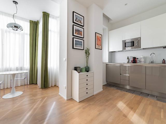 L' immobile ha una luminosità importante con un' esposizione a sud - est. Il monolocale così composto presenta, ampio soggiorno con cucina ad induzione a vista, arredamento fatto su misura per ottimizzare gli spazzi.
