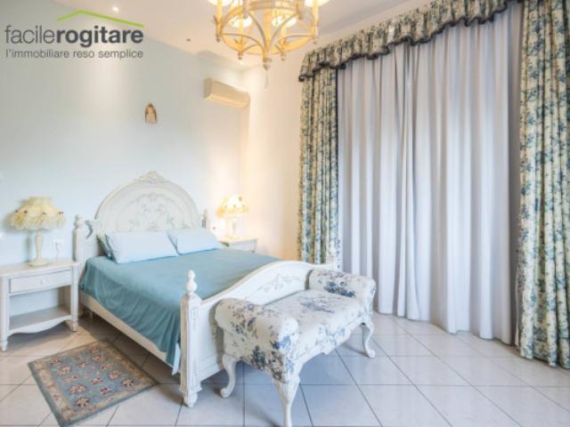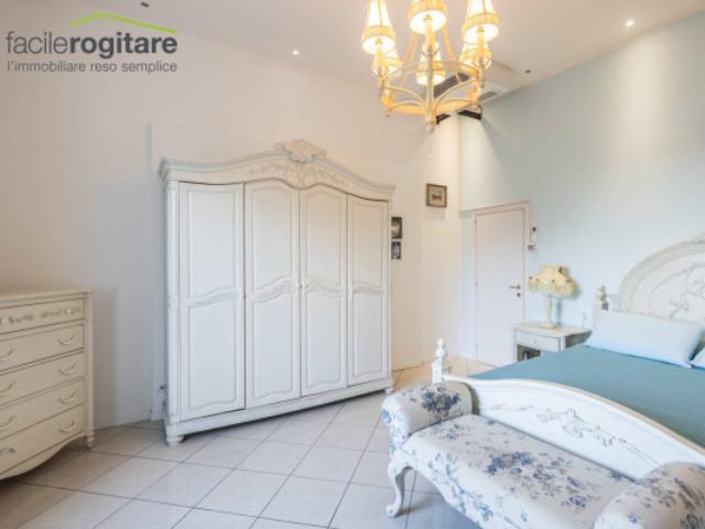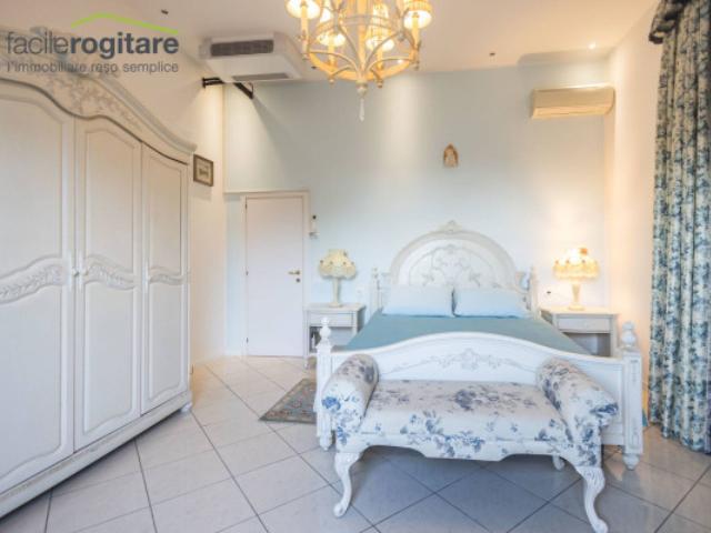 Una scala elegante conduce al piano ammezzato, dove una camera matrimoniale, utilizzabile anche come studio, offre un rifugio privato e versatile. Salendo al primo piano, il reparto notte accoglie quattro camere matrimoniali aggiuntive, tra cui due con vista mozzafiato sul mare e accesso diretto a un’ampia terrazza. Questo spazio esterno rappresenta il cuore della convivialità, perfetto per aperitivi al tramonto o momenti di relax in compagnia. Un grande bagno dotato di vasca e box doccia, serve con raffinatezza questa zona superiore, pensata per il massimo del comfort.