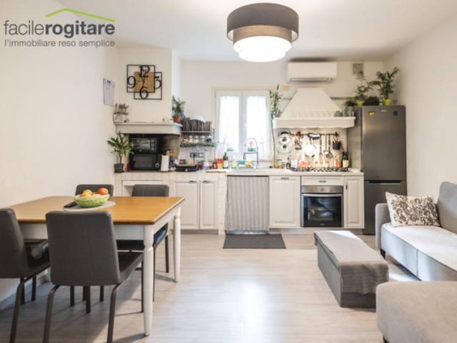 All’interno, ogni dettaglio racconta una scelta fatta con cura. Il soggiorno, impreziosito da un antico camino, è il cuore caldo della casa, dove sentirsi sempre accolti. La cucina a vista si affaccia su questo spazio con eleganza, pronta ad accompagnare ogni momento della giornata. La camera matrimoniale, perfetta per ritrovare quiete dopo una lunga giornata. Un secondo ambiente, oggi adibito a camera, si presta a diventare uno studio, una stanza per gli ospiti o magari il nido per una nuova famiglia in crescita. Il bagno, anch’esso ristrutturato, completa un quadro armonioso e funzionale.