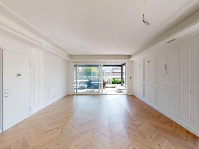 Le rifiniture sono di pregio assoluto, parquet di grandi formati in tutti gli ambienti e bagni rivestiti in marmo. L'appartamento è dotato di un avanzato impianto di domotica Biticino (ampliabile), infissi in PVC con tripli vetri, tapparelle motorizzate e videocitofono.