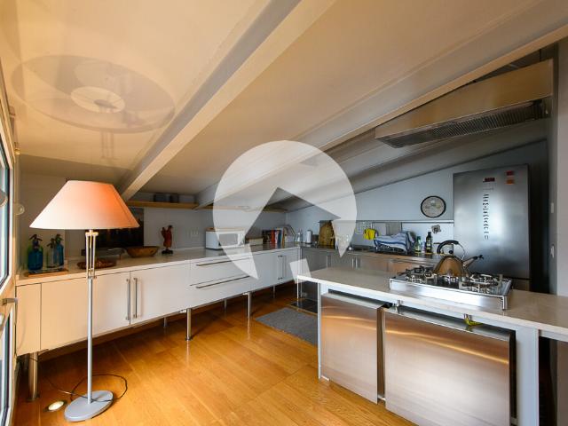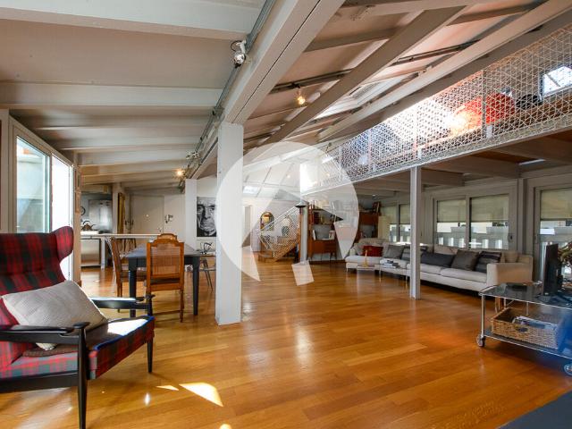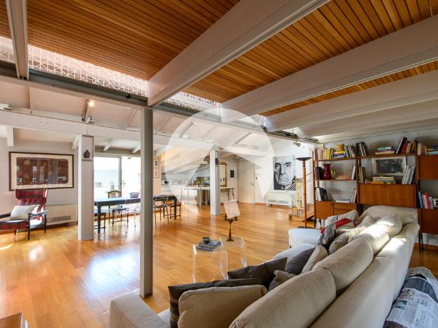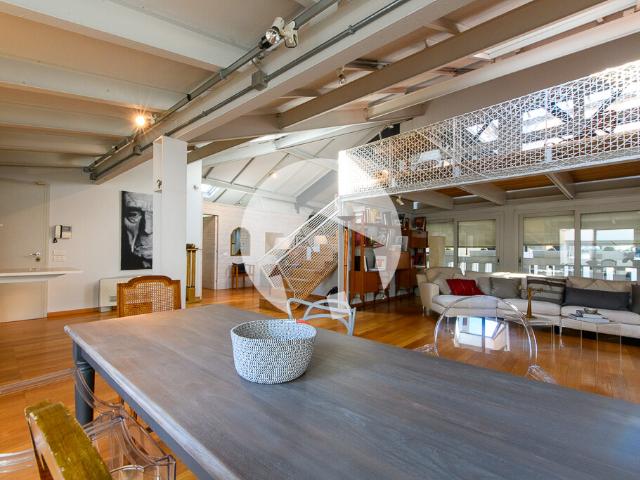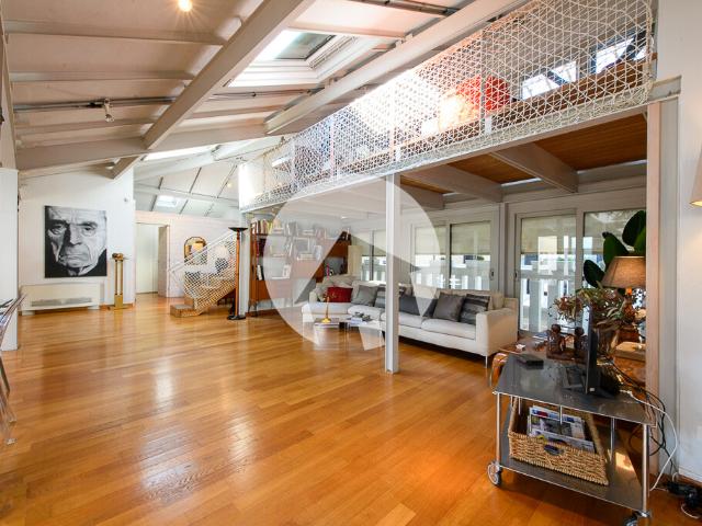 La generosa metratura del soggiorno e la presenza di due soppalchi abitabili offrono la possibilità di ricavare ulteriori camere o studi.