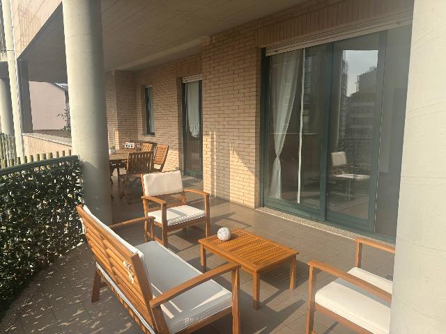 L'immobile si trova al secondo piano del prestigioso condominio “Vista Palace”, costruito nel 2002, con ottima esposizione, vista totalmente aperta e assenza di barriere architettoniche.