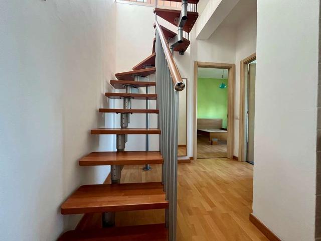 L'immobile è composto da soggiorno con cucina a vista e accesso al balcone, camera matrimoniale con accesso al balcone, bagno finestrato con doccia., soffitta accessibile da scala a chiocciola ideale come spazio relax, studio o zona hobby.