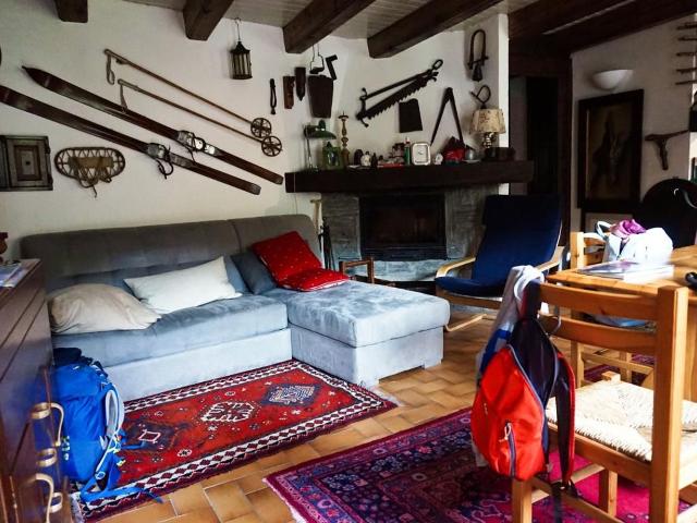 Il piano rialzato ospita un accogliente appartamento bilocale con ampio soggiorno dotato di camino, angolo cottura, bagno e una camera da letto. Al primo piano, un secondo appartamento con soggiorno (attualmente usato come camera), due camere da letto e un bagno.