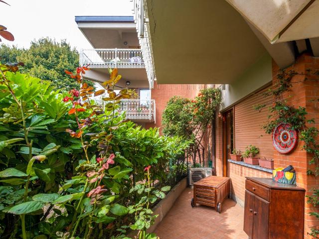 In piccola palazzina signorile, immersa in un parco privato con area giochi per i bambini , proponiamo in vendita appartamento con giardino esclusivo.