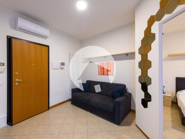 In un intervento recente vi proponiamo, al primo piano, un appartamento composto da un ampio locale suddiviso in zona giorno con cucina a vista e zona notte con letto matrimoniale e angolo studio, corredato da un bagno con doccia.