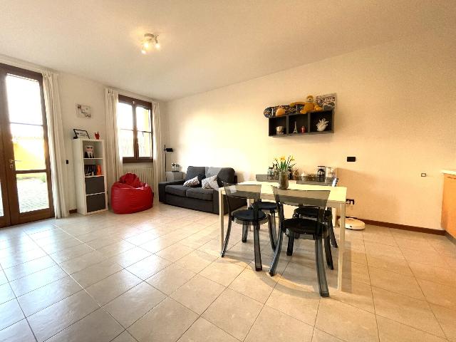 L'appartamento si trova all'interno di una cascina completamente ristrutturata, situato al piano terra caratterizzato da un ampio portico con zona verde privata ad uso esclusivo perpetuo.