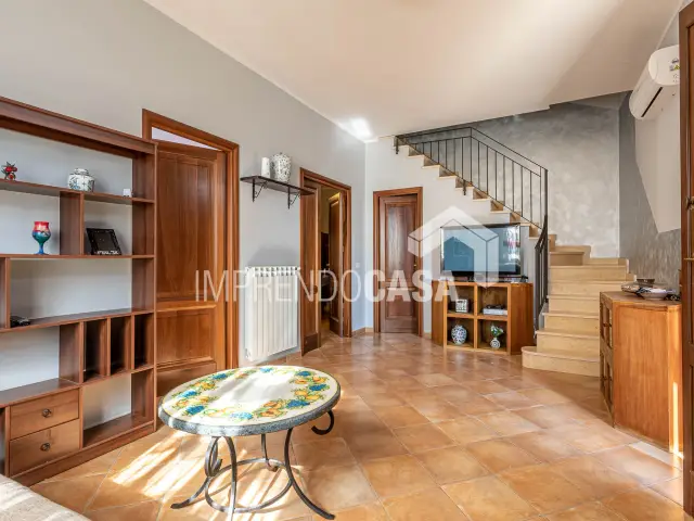 L’immobile, di recente costruzione, è dotato di: porta d’ingresso blindata, riscaldamento autonomo con caldaia, climatizzatori, infissi in alluminio e vetrocamera con zanzariere, impianto d’allarme e videosorveglianza, pavimentazione in ceramica, porte in legno massello e arredamento completo.