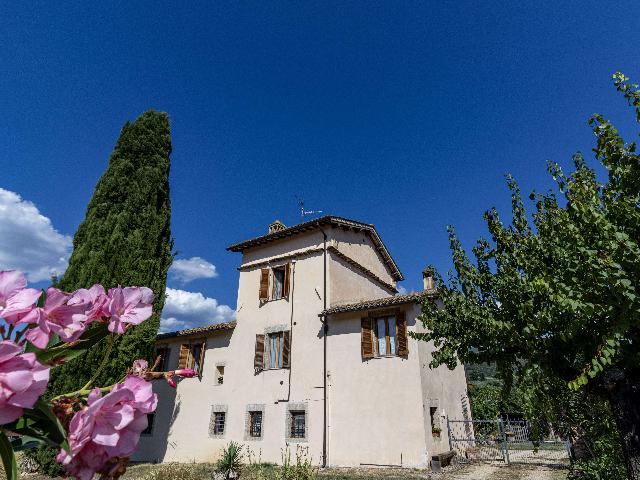 SPOLETO, LOCALITÀ MADONNA DI LUGO - A soli 2 km dal centro storico di Spoleto, immersa nella quiete e nella bellezza della cittadina umbra, in zona residenziale e ben collegata, con tutti i servizi a disposizione , sorge questa affascinante villa storica del Quattrocento, circondata da un terreno esclusivo di circa 4 ettari pianeggianti, con vista panoramica sulla Rocca Albornoziana.