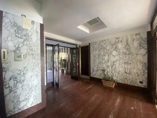 CROSSIMMOBILIARE propone in vendita in Via Cilea in prestigioso Parco, splendido appartamento con doppio ingresso di 180 mq tripli acc. SOLUZIONE DIVISIBILE !!! La soluzione posta ad un terzo piano è cosi composto: doppio ingresso, salone, disimpegno, vano studio, cucina abitabile con balcone, bagno di servizio, disimpegno con ampio vano ripostiglio e armadio a muro, soggiorno doppio con tre punti luce attraverso un'ampia finestra e doppia uscita su un ampio balcone terrazzato con vista su area flegrea, corridoio con ampi armadi a muro, I vano matrimoniale con balcone, II bagno, II camera da letto con finestra e cabina armadio, III bagno con doccia e III camera matrimoniale con finestra. L'appartamento ha una tripla esposizione con affaccio su area flegrea ed interno parco - con ascensore - servizio di portierato e sorveglianza h24 - Riscaldamento Centralizzato - Posto auto condominiale fisso a pagamento € 25,00 - Spese Condominiali € 260,00 mensili A completare la proprietà Cantina di 12 mq CROSSIMMOBILIARE offers for sale in Via Cilea in a prestigious Park, a splendid apartment with double entrance of 180 square meters triple acc. The solution located on a third floor is composed as follows: double entrance, lounge, hallway, study room, eat-in kitchen with balcony, bathroom, hallway with large storage room and built-in wardrobe, double living room with three light points through a large window and double exit onto a large terraced balcony overlooking the Phlegraean area, corridor with large built-in wardrobes, 1st double bedroom with balcony, 2nd bathroom, 2nd bedroom with window and walk-in closet, 3rd bathroom with shower and 3rd double bedroom with window. The apartment has a triple exposure overlooking the Phlegraean area and the internal park - with elevator - 24-hour concierge and surveillance service - Centralized Heating - Fixed condominium parking space for a fee of € 25.00 - Condominium fees € 260.00 per month To complete the property, a 12 sqm cellar