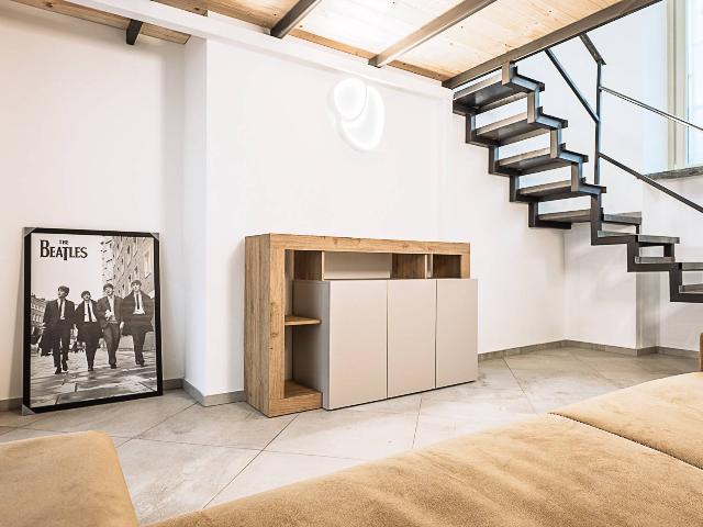 Con accesso da grazioso interno corte, l'immobile è composto da ingresso, ampia zona giorno "Open Space" suddivisa su zona pranzo con cucina attrezzata, zona soggiorno, bagno di servizio e ampio soppalco. Al piano seminterrato con accesso tramite scala altra camera con abitabilità e bagno interno completo molto bello.